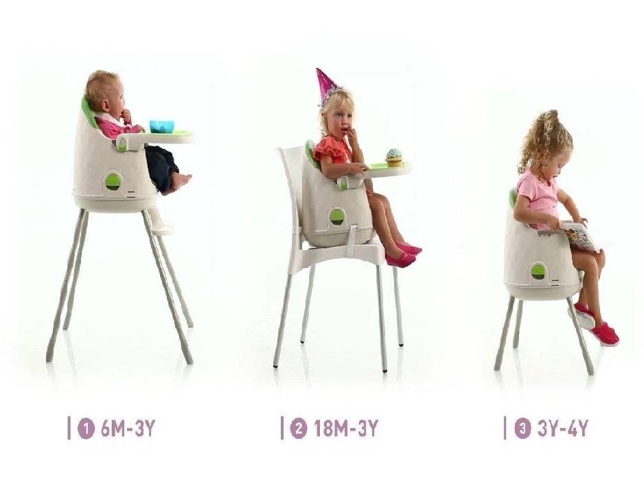 Стульчик , который растет вместе с ребенком! Уникальный дизайн стула сопровождает малыша на всех основных этапах развития и разработан так, чтобы функционировать в качестве высокого стульчика для кормления , вспомогательного стула-бустера и самостоятельного кресла. Стул Multi Dine будет сопровождать ребенка от  6 месяцев до 4-5 лет ! С 6 месяцев до 3 лет (до 15 кг) - стульчик для кормления. Безопасная и удобная столовая зона для малыша, порадует и мам, ведь все детали стула легко содержать в чистоте.  С 18 месяцев до 3 лет (до15 кг) стульчик можно использовать в качестве бустера на взрослый кухонный стул. Малыш может участвовать в семейных завтраках, обедах и ужинах вместе со взрослыми за обеденным столом без вероятности упасть. В возрасте 3-5 лет (до 20 кг), возможно и старше, стульчик для ребенка превращается в настоящее кресло.