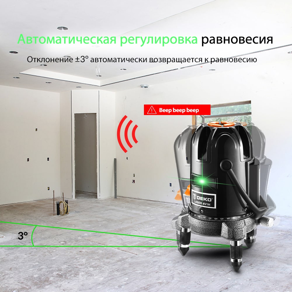 Лазерный уровень DEKO LL57GA - это самовыравнивающийся прибор, используемый при отделочных и строительных работах. Он проецирует вертикальные и горизонтальные линии.