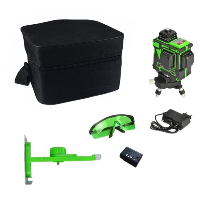 Модель имеет возможность проецировать 12 линий в режиме 3D. Три лазерных окна, каждое запускает четыре лазерные линии.