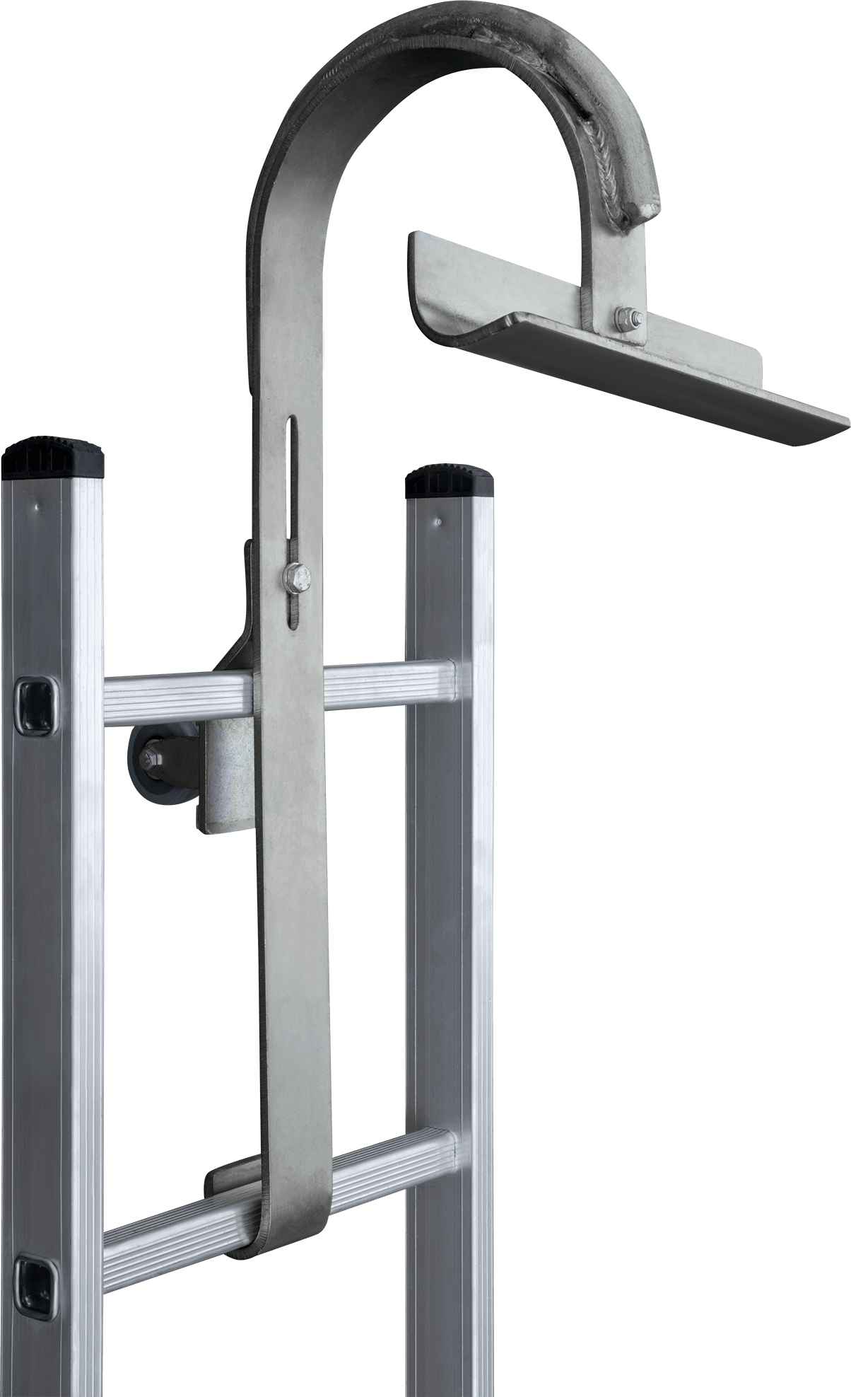 Передвижная скоба позволяет надежно зафиксировать лестницу
