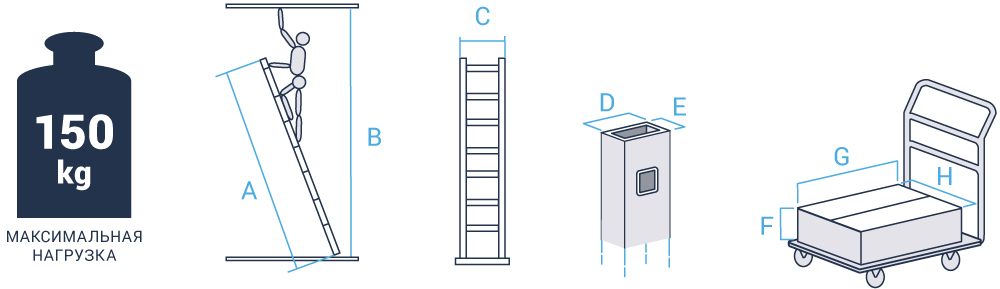 опорные наконечники изготовлены из двухкомпонентного пластика, где жесткий компонент отвечает за надежность крепления, а мягкий препятствует скольжению лестницы. Установлены с двух сторон для удобства работы