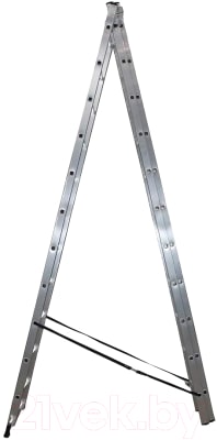 Характеристики: приставная лестница, 33 ступеней, алюминий, макс. нагрузка 150 кг, общая высота 8590 мм, высота секции 3160 мм, ширина 460 мм