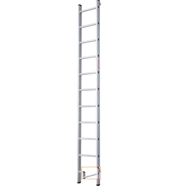 Опорные наконечники изготовлены из двухкомпонентного пластика, где жесткий компонент отвечает за надежность крепления, а мягкий препятствует скольжению лестницы. Установлены с двух сторон для удобства работы