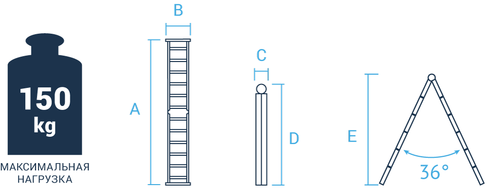 Прочность и надёжность при небольшом весе изделия. Ступени с рифлением для безопасного подъёма и спуска. Стойки и ступени изготовлены из прессованного алюминиевого профиля. Стойки с дополнительным усилием в наиболее нагруженных местах для повышения жёсткости