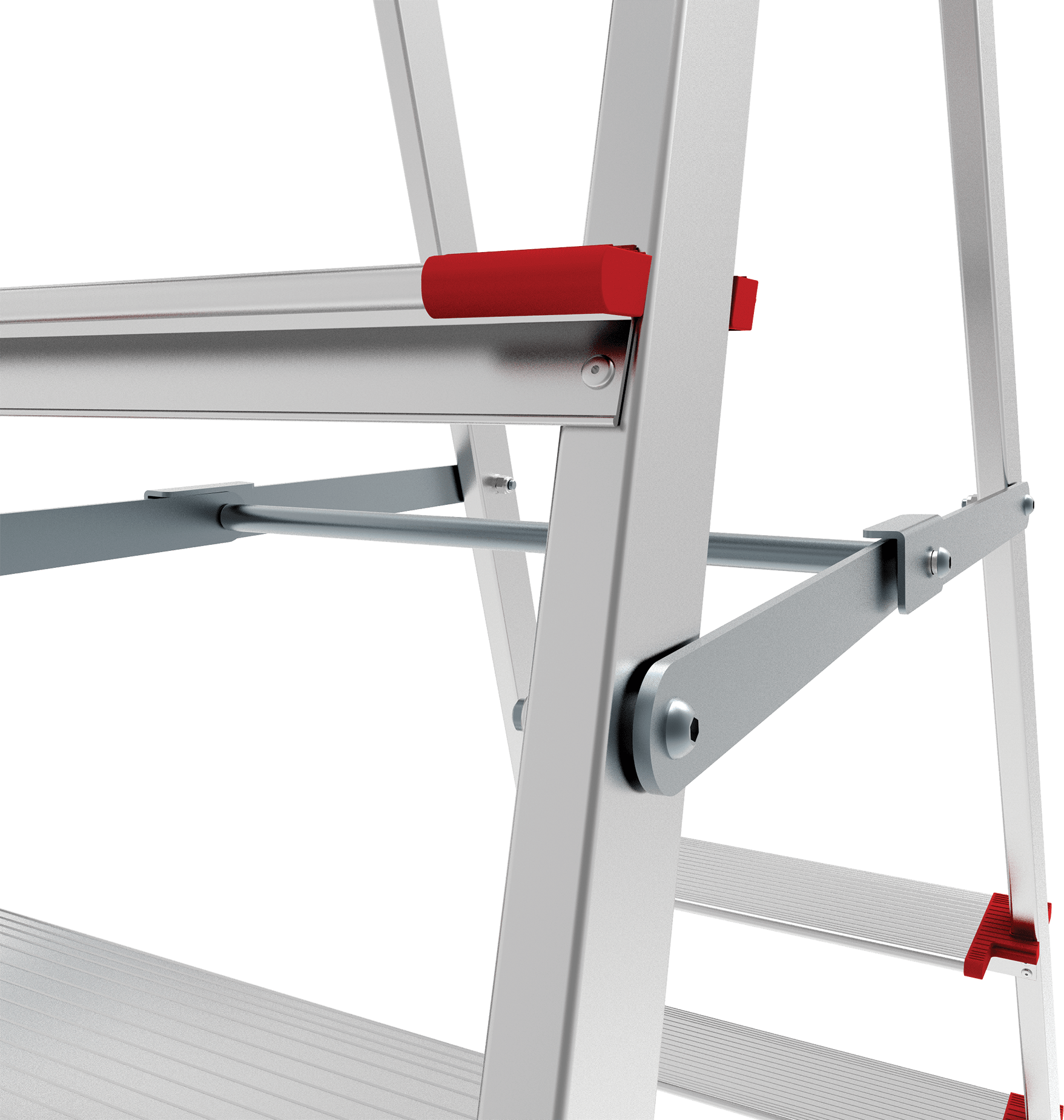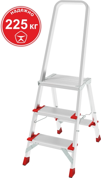 Широкая складная верхняя площадка 260 мм. Легко устанавливается и обеспечивает высокий уровень комфорта. Ступени и стойки из прессованных алюминиевых профилей увеличенного сечения. Широкие увеличенные ступени глубиной 130 мм.Рифлёная поверхность ступеней способствует безопасному подъёму и спуску