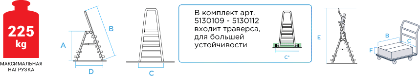 Артикул Ступени A, м B, м C, м C*, м D, м E, м F, м Вес, кг Цена
