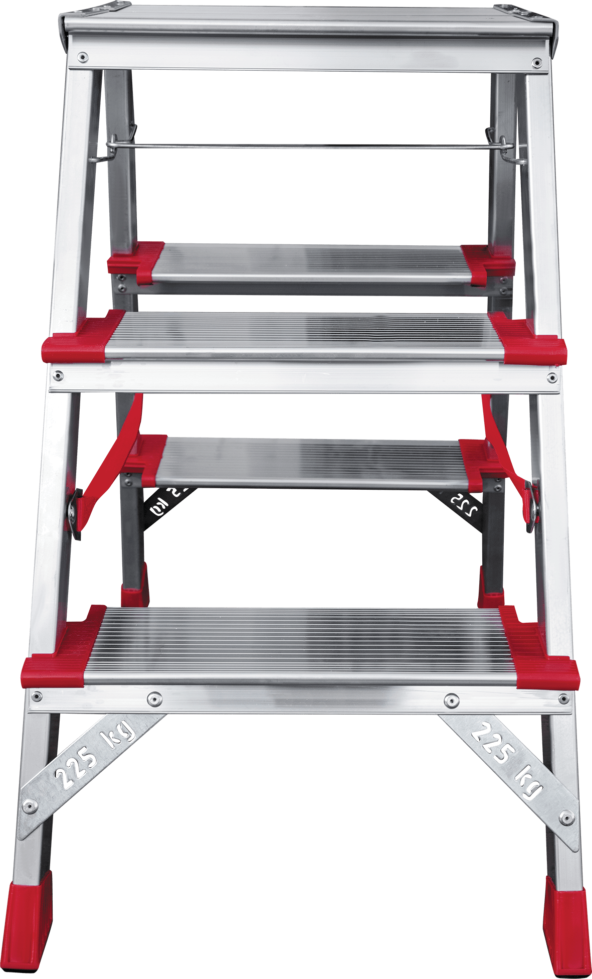 cтупени с двух сторон позволяют работать не перставляя стремянку тем самым экономя время