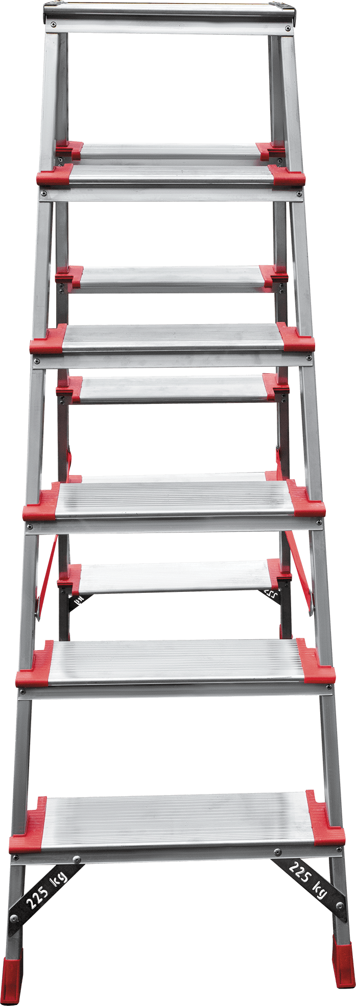 cтупени с двух сторон позволяют работать не перставляя стремянку тем самым экономя время
