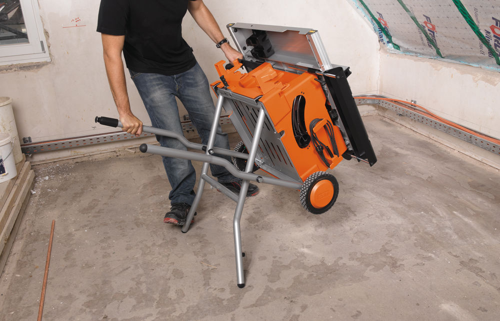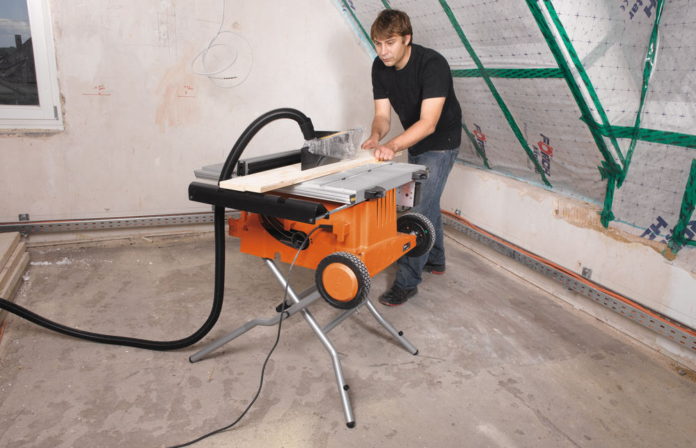 Поставляется с пильным диском ТСТ 36 зубьев, параллельной направляющей, угловой направляющей, складывающимся стендом с транспортировочными колесами, толкателем и ключом