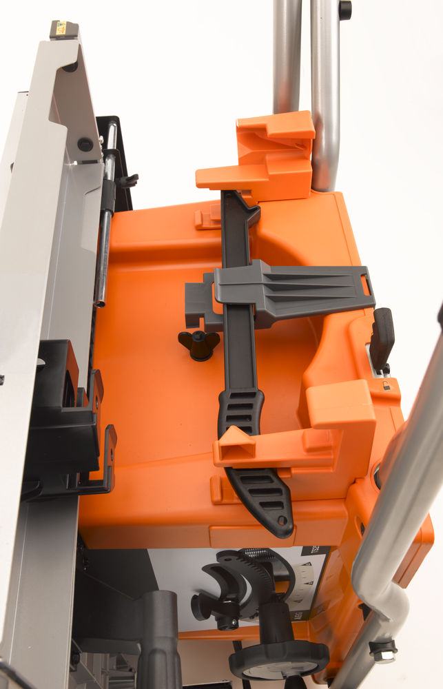 Встроенный боковой расширитель увеличивает размер опорного стола до 750 мм и позволяет работать с крупногабаритными заготовками