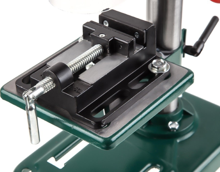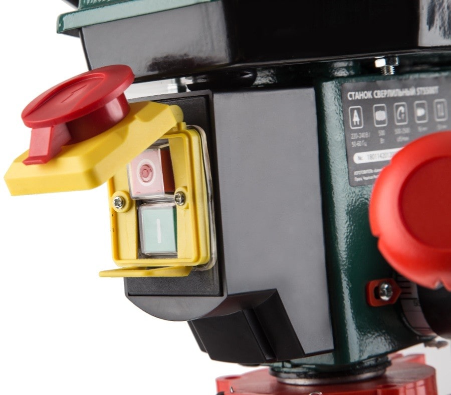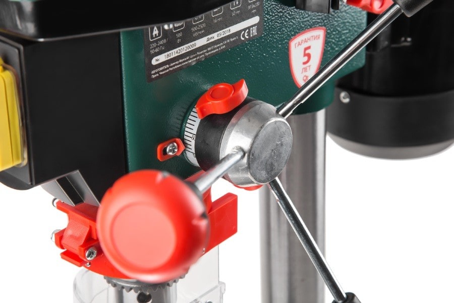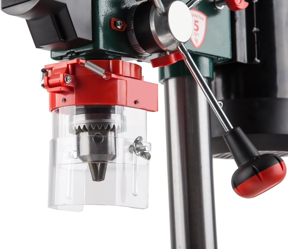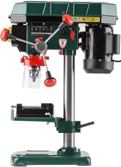 Характеристики: 500 Вт; 9 скоростей; наклон до 45 град; D 16 мм ключевой патрон; ход шпинделя 50 мм; число оборотов 500 - 2500 об/мин; вес 17,0 кг. Комплектация: стол с тисками; 16мм сверлильный патрон; ключи