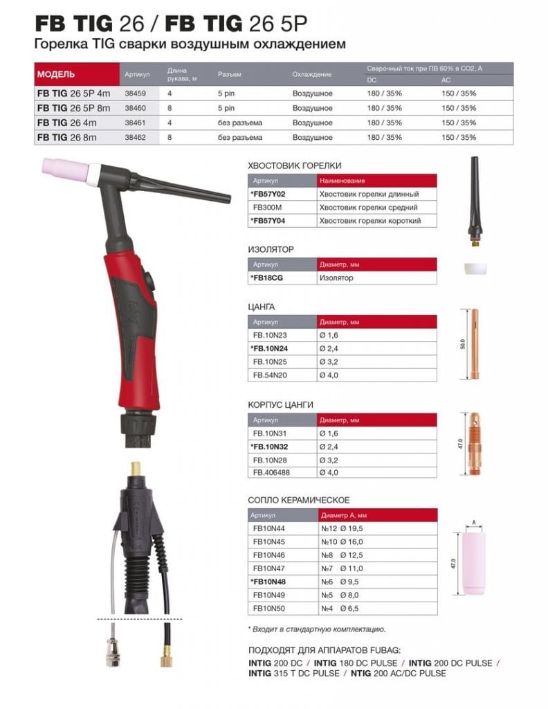 Горелка для TIG сварки FB 26 5P (4 м) FUBAG