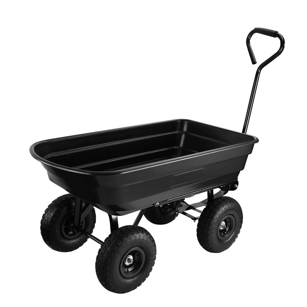 Тележка садовая четырехколесная с механизмом опрокидывания DEKO DKGT75 предназначена для перевозки груза, такого как рассада, грунт, удобрения, растения или дрова. Тележка имеет 4 прочных колеса, которые подойдут для любого грунта. Для удобства эксплуатации тележка оснащена тяговой рукояткой, при необходимости ее можно сложить.
