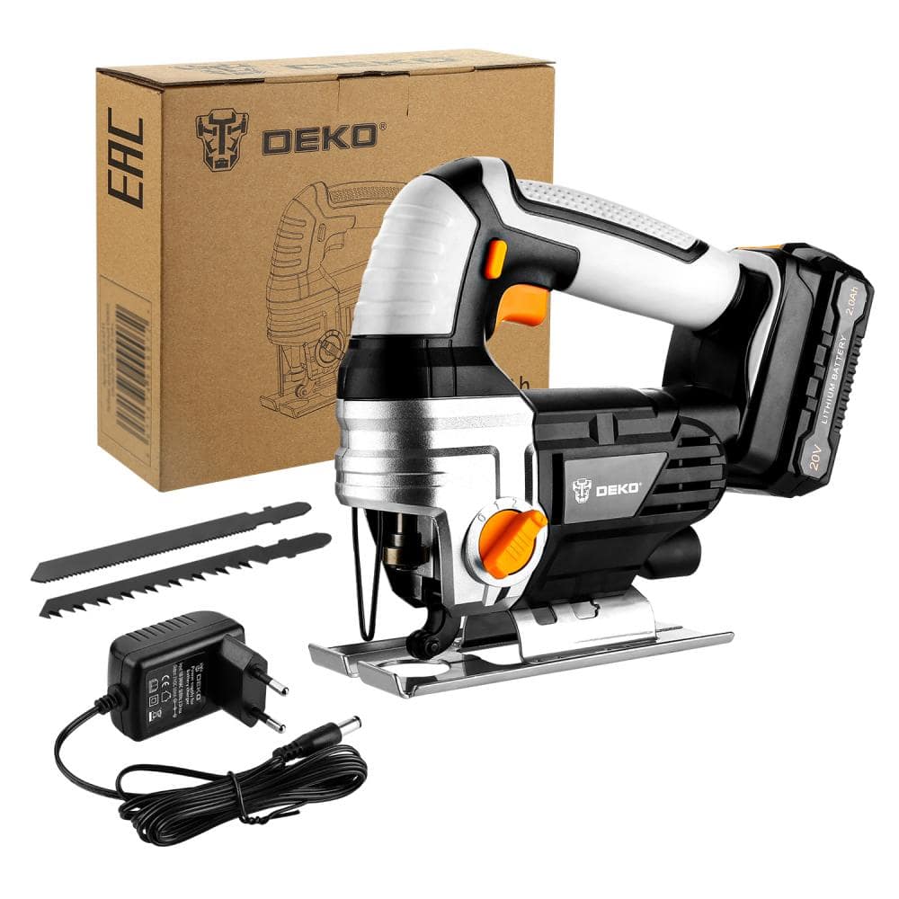 Лобзик аккумуляторный DEKO DKJS20 20В 1*2.0Ач используется для распиливания дерева, металла, пластика, резины при отделочных или ремонтных работах.