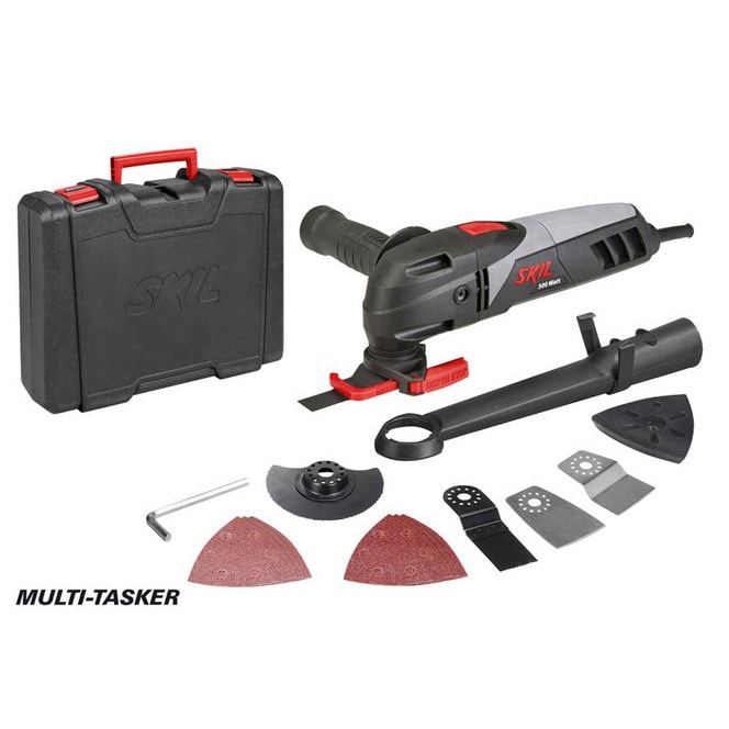 Skil 1480 «Multi-Tasker» оснащен двигателем 300 Вт и чрезвычайно универсален. Сменяя принадлежности из комплекта поставки, вы сможете использовать этот многофункциональный инструмент для множества работ, таких как шлифование, пиление, резка, зачистка и циклевание. Многофункциональный инструмент совместим с широко представленными на рынке принадлежностями Bosch «OIS» и «Starlock», так что вы всегда сможете найти нужные принадлежности для конкретной работы. Для обеспечения оптимальной управляемости боковую рукоятку можно подсоединять с любой стороны инструмента. Включенный регулятор глубины плавно регулируется до 80 мм и предотвращает случайное повреждение приспособлений и материалов, находящихся под заготовкой, например электрических проводов. Этот многофункциональный инструмент поставляется в прочном кейсе в комплекте с набором из 15 принадлежностей.