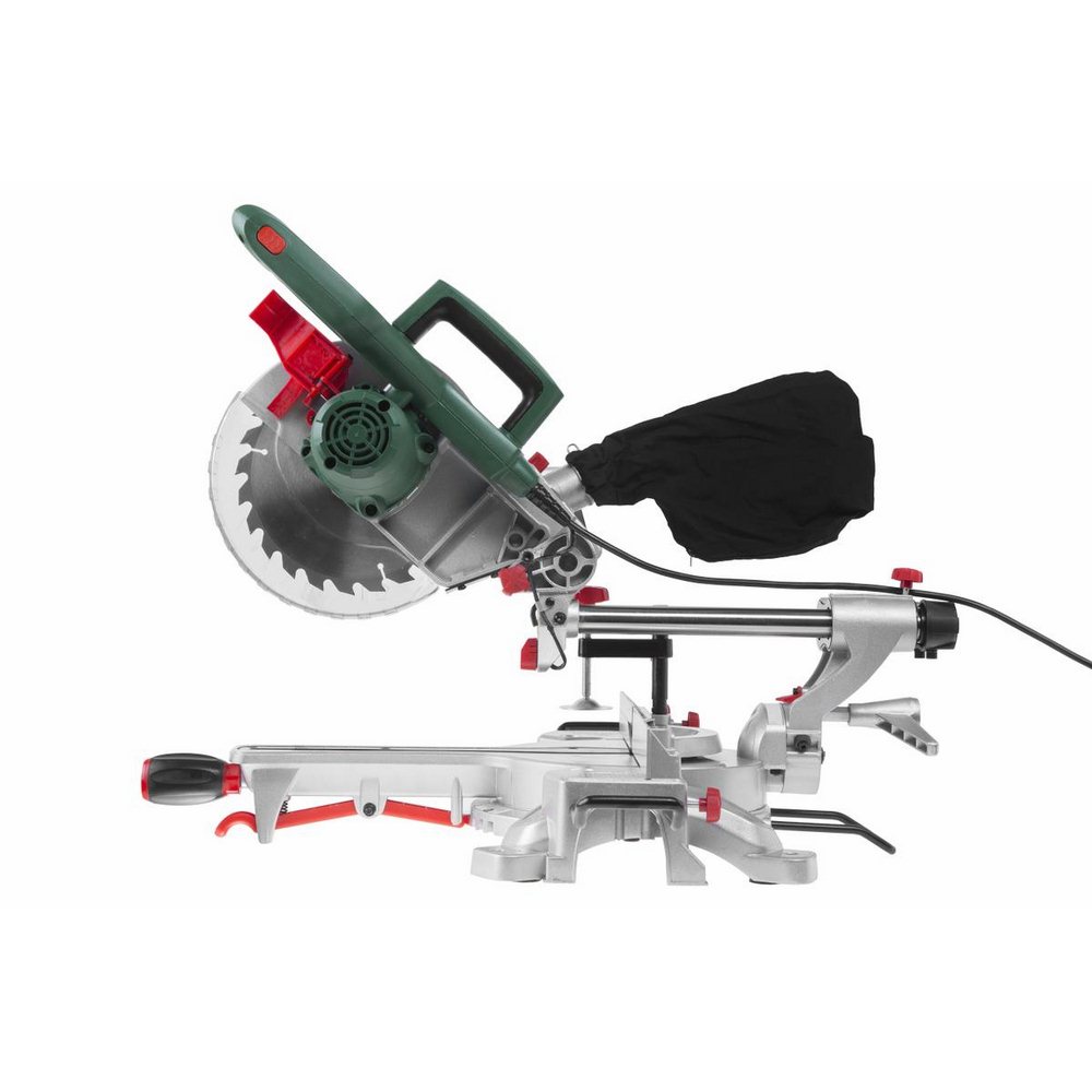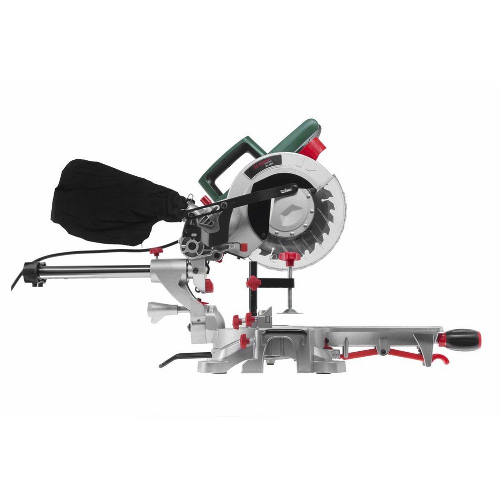 Торцовочная пила с двигателем мощностью 1400 Вт снабжена функцией протяжки для обработки заготовок шириной до 300 мм