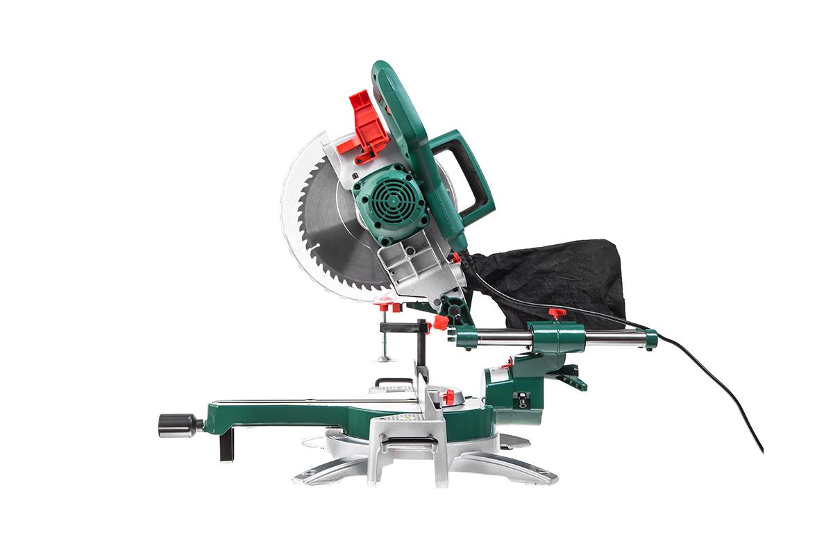 Торцовочная пила с литым алюминиевым основанием, алюминиевым рабочим столом и возможностью фиксированной установки;