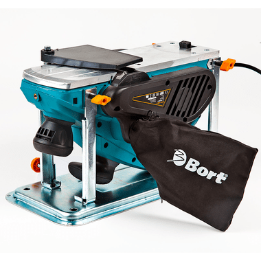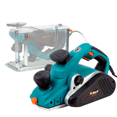 Рубанок Bort BFB-1300-T - это сверхмощный универсал: рубанок, которым можно обрабатывать доски шириной до 110мм (а большинство рубанков имеет ширину 82мм); устройство для выборки четверти; строгальный станок. Мощный мотор 1300Ватт, литое основание, литой металлический промщит - всё указывает на большой запас прочности и надежности. Можно снимать за один проход до 3,5мм! Входящая в комплект станина и аксессуары позволяет устанавливать рубанок Bort BFB-1300-T в стационарное положение и использовать его как станок. При работах возникают различные особенности, производитель учел почти все эти мелочи: можно менять направление выброса стружки, применены 2 дополнительные рукоятки, в комплект входит мешок для сбора стружек. С помощью этого рубанка теперь столярные работы работы выполняются с максимальной точностью, эффективностью и удобством.