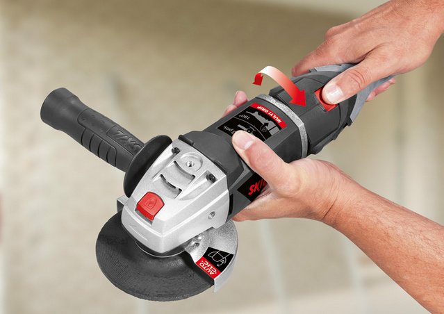 УШМ имеет рукоятки с мягким покрытием и особо крупный выключатель питания, повышающий удобство работы. Автоматическая система «Clic» позволяет быстро регулировать кожух без помощи ключа, благодаря чему можно отклонять искры в любом направлении. Вы можете легко установить боковую ручку УШМ в одно из трех положений, чтобы увеличить сцепление при резании или шлифовании. УШМ оснащена 3-метровым шнуром питания, повышающим свободу перемещения.